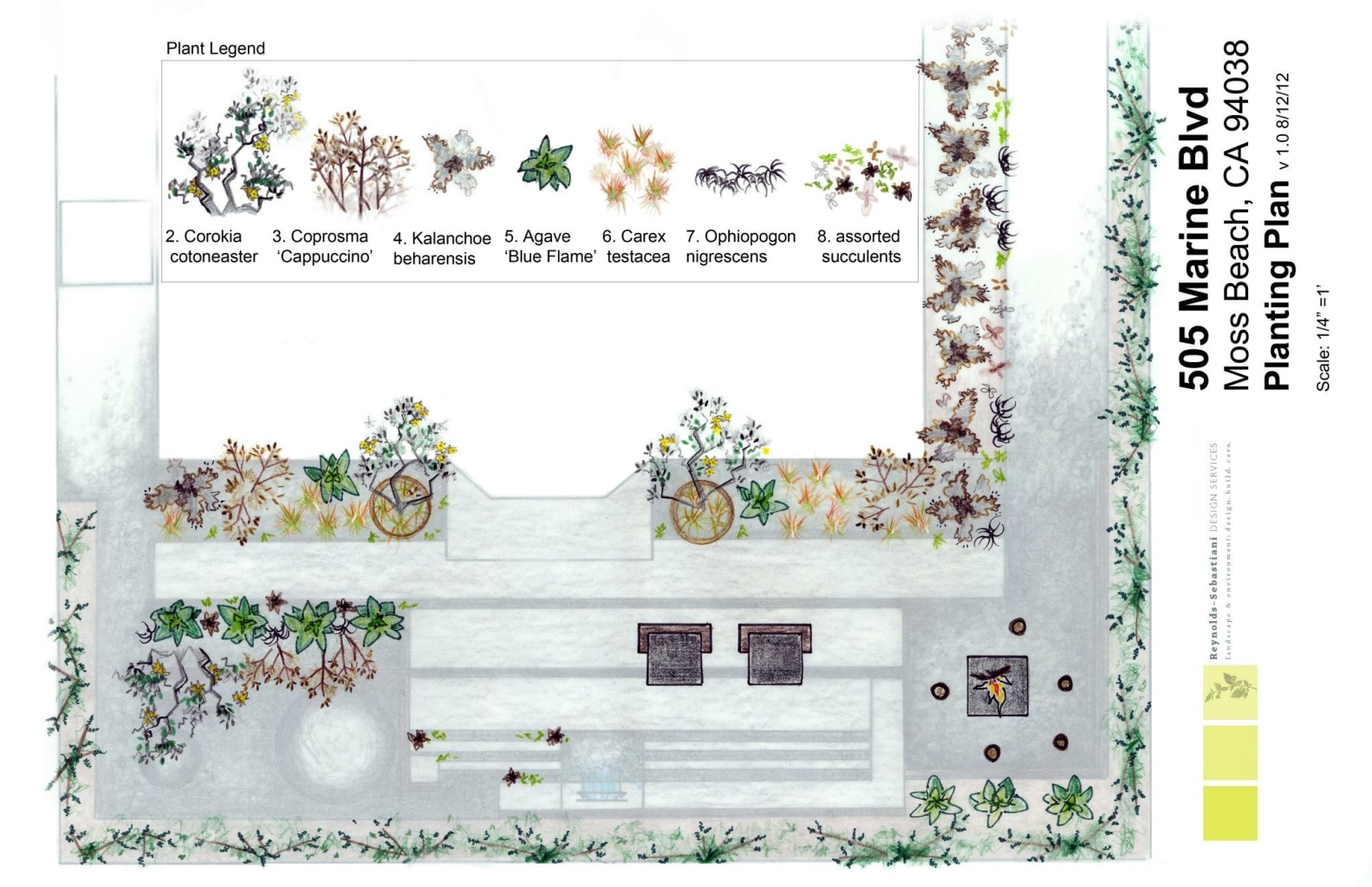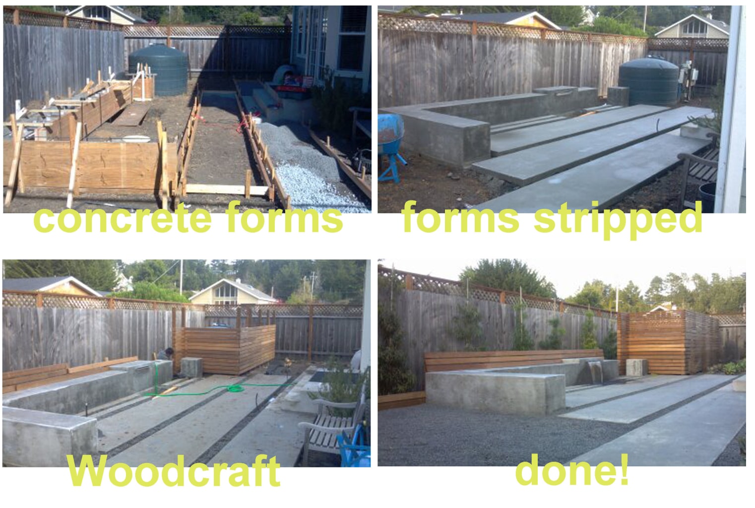 We are pleased to have just finished a project on Marine Drive in the small coastal community of Moss Beach, California. The new space features a stunning hard-trowel concrete seating wall and integrated spillway water feature.