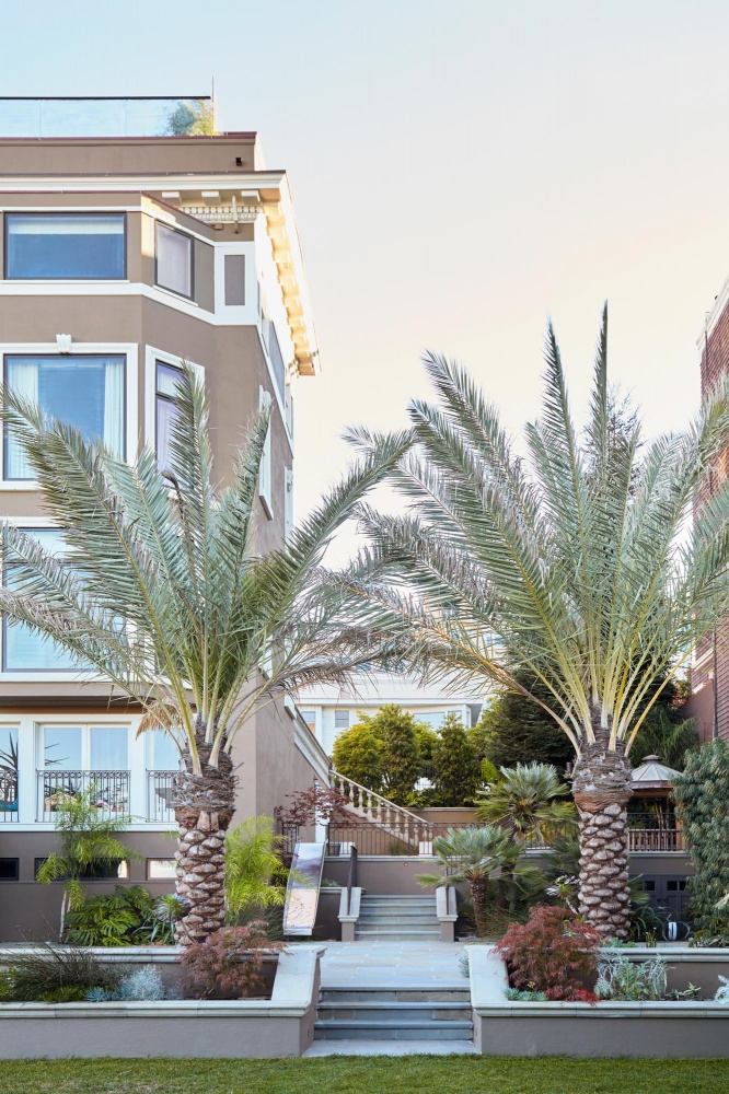 A monumental home originally built by a prominent family who's wealth was made as sugar barons was reimagined for a modern family. Grand terraces provide for varied uses for each of the different members of the family. An tropical plant palette expands on the current homeowner's love of exotic plants while also connecting to the home's imperialist roots.