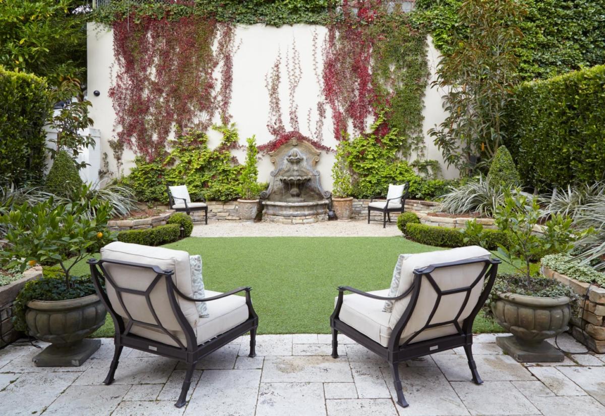 The homeowner wanted a strictly French Provincial manor. The challenge was to incorporate some surprising elements so the feel wouldn't be stodgy or predictable. We used very French references in the curves and stone selection of the stone walls and the use of parterres. We used silver foliage plants to add a rich modern twist. The tension creates drama.