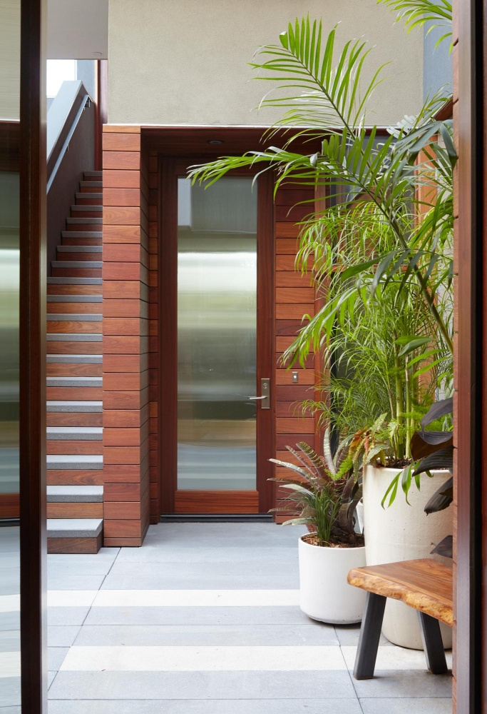 Surrounded on all sides by tall apartments and a busy commercial district, the goal was to create a serene secret garden sanctuary in the heart of the hustle and bustle. Tall ipe walls and lush plantings provide a quiet respite from the activity beyond. A huge amount of archeological material from the 1906 earthquake and fire was discovered while digging. We incorporated bricks we excavated into the new paving as a testament to the lives lived and lost there.