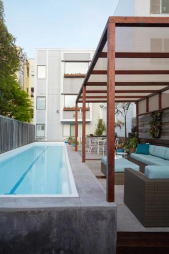A run down pool that was once the centerpiece of swinging parties in the 70s is brought back from a slimy green brink to become a place to festive entertainment again. A new pool coping and deck, invite you into the integrated cabana and a new bar of reclaimed wood serves for both grilling and chilling.